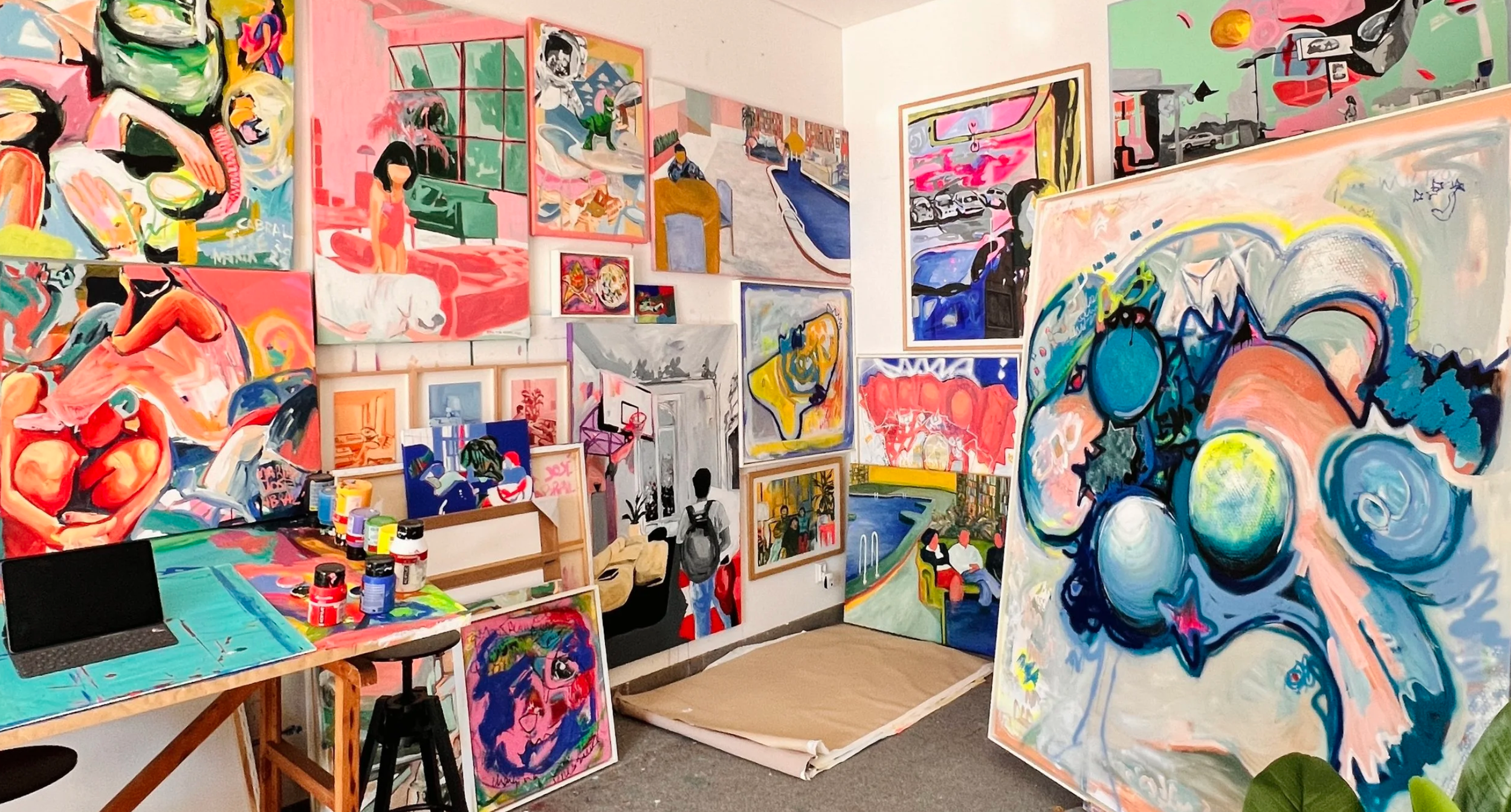 Maria José Cabral (Lisboa, 1993) is a contemporary artist based in Lisbon, Portugal, whose work explores the interplay between reality and imagination through bold, vibrant paintings on canvas. Her work has been collected internationally and has been exhibited in Portugal and in cities including Madrid, New York, Palermo, and Rome.